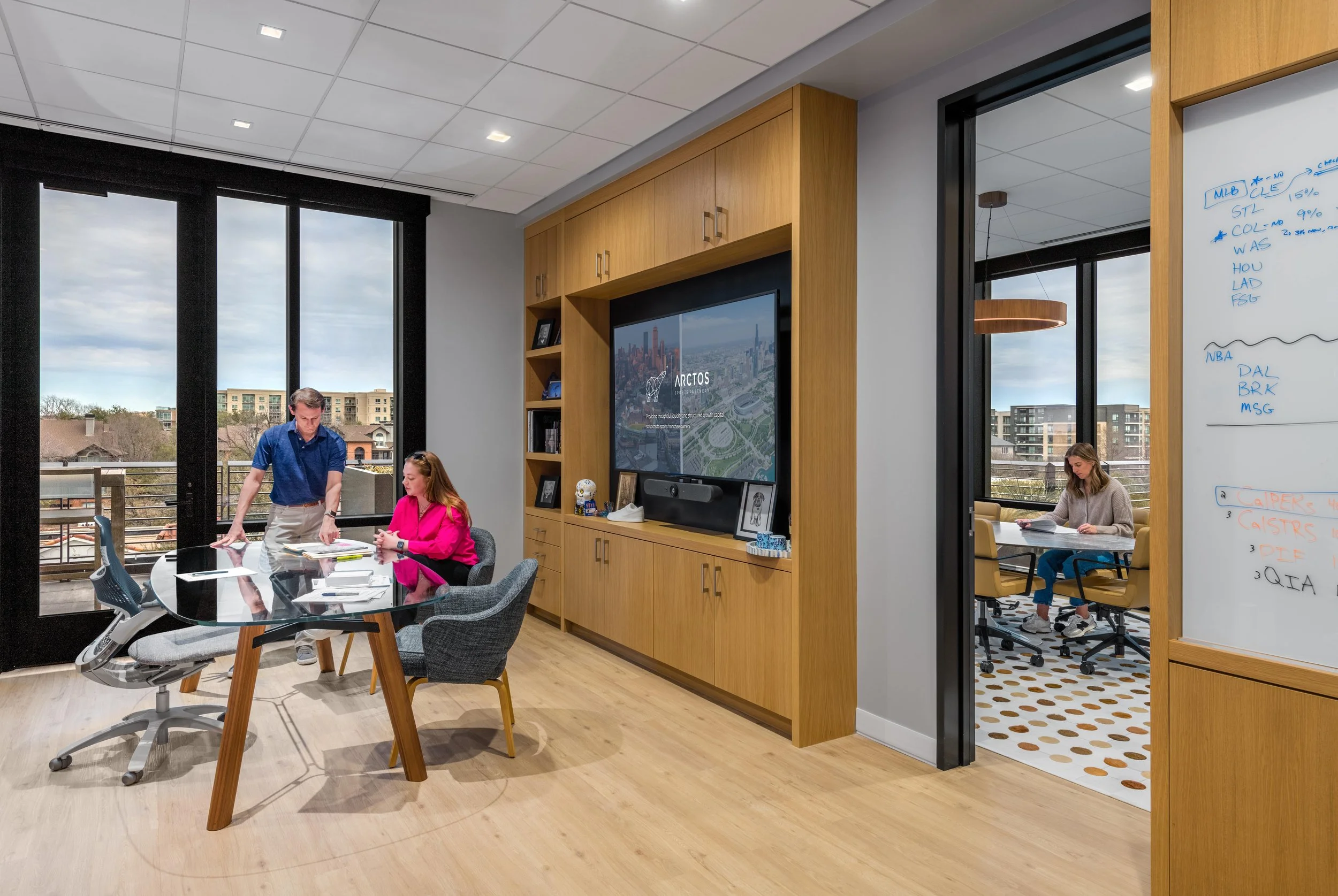 Arctos Sports Partners is a Dallas-based private equity firm focused on professional sports and franchise ownership. For their new headquarters at the newly developed Weir’s Plaza, a modern, high-design building in the heart of Knox District, they needed a space that reflected sharp strategy and their distinct sense of style. HRNCIR Construction and SHM Architects were selected to bring their vision to life.