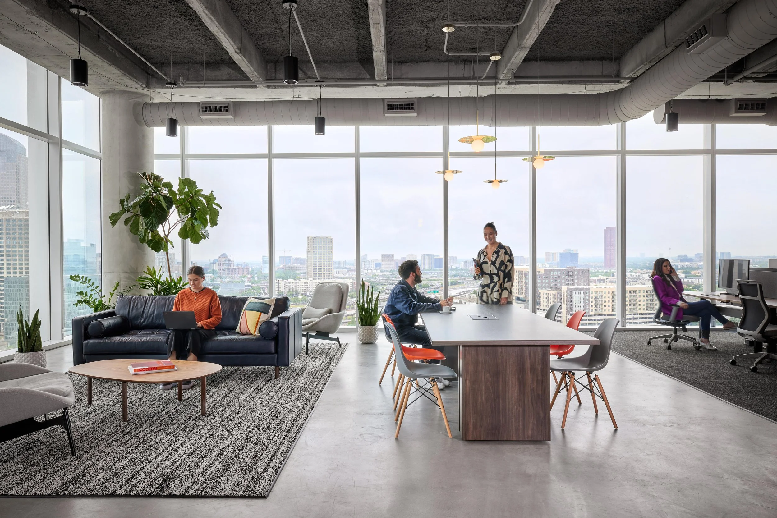 The terrazzo island in the café is a standout, flanked by skyline views and finished with rich textures and architectural lighting. The space elevates everyday work while staying true to the agency’s personality: strategic, expressive, and never boring.